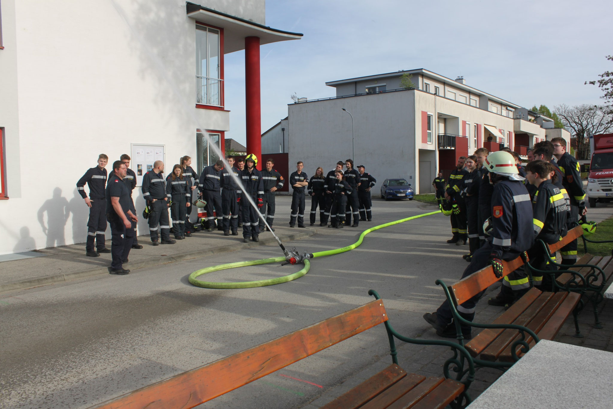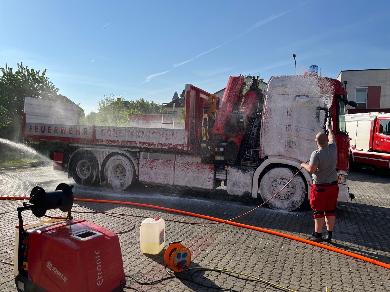 Die ersten starteten bereits um 8:00 Uhr, danach wurde hintereinander das ganze Feuerwehrhaus, der Keller, der Versammlungssaal, die Garage und die ganzen Autos gründlich gereinigt, anschließend