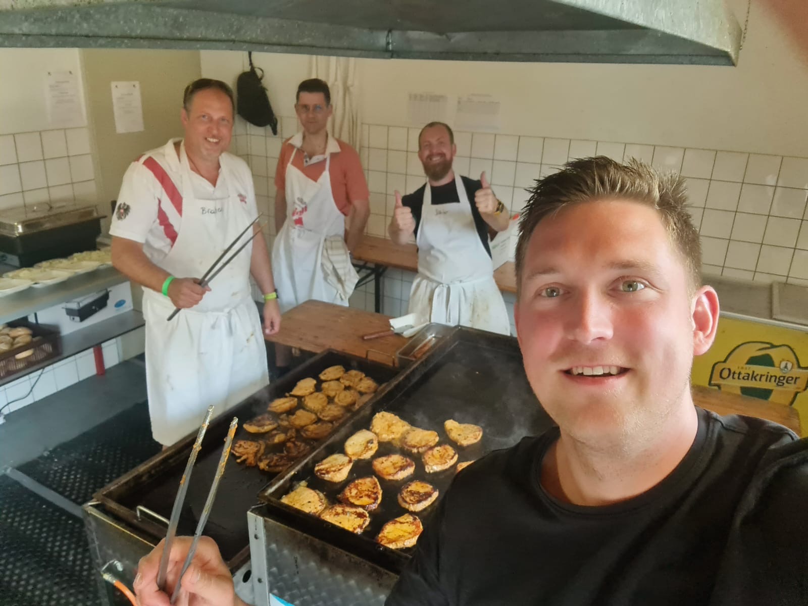 Dieser angenehme Auftakt in den Tag erwies sich als äußerst wertvoll, da beim Anstoßen zur Mittagszeit die Kellner, Austräger, Köche und alle anderen Helferinnen und Helfer ordentlich ins