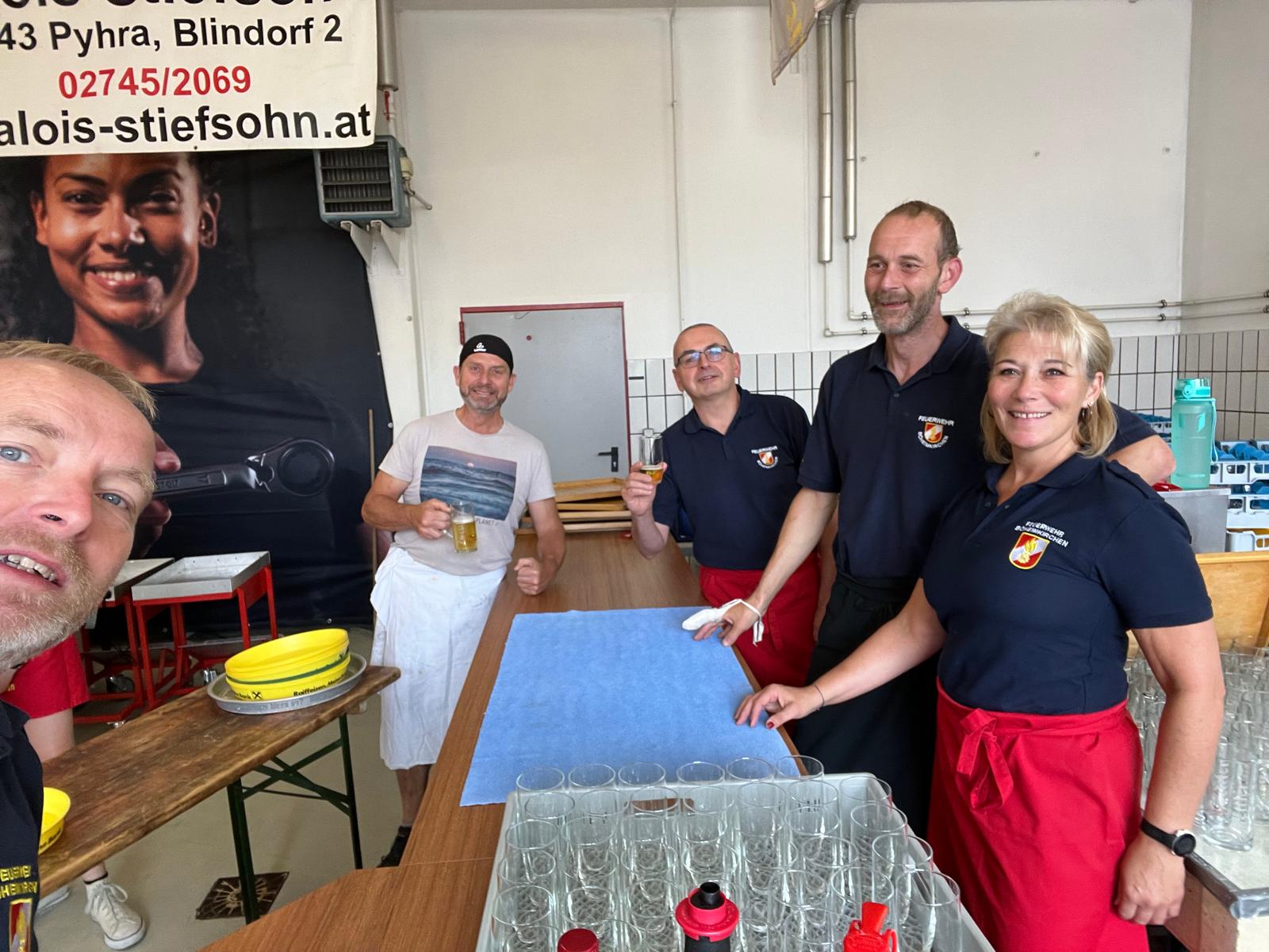 mit den Baufirmen Karner und Kickinger Absprachen zu Verfügbarkeiten am Wochenende und Sand und Schotter getroffen. Ein paar Kameraden kümmerten sich desweilen um den Einkauf von Essen und