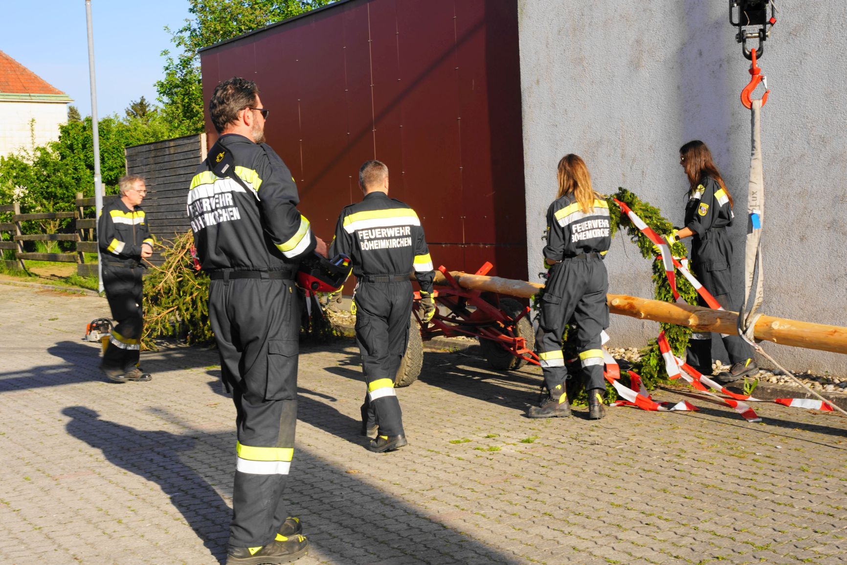 Um 17:00 Uhr ging es offiziell los, unsere Kameraden trafen sich allerdings schon einige Stunden vorher, um den Maibaum abzuholen, und unsere Wettkampfgruppe organisierte die Verpflegung.