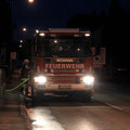 Nachdem sich der erste Atemschutztrupp aus dem Tank Böheimkirchen ausrüstete und sich auf den Einsatz vorbereitete, legte die Mannschaft einstweilen eine Zubringerleitung zum Gartenzaun des Anwesens und es wurde eine Leiter aufgebaut, um den Zugang zum oberen Geschoß möglich zu machen.