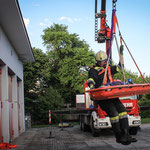 An diesem Tag wurde der richtige Umgang mit der Korbtrage geübt. Ebenfalls wurde der Kran beübt.