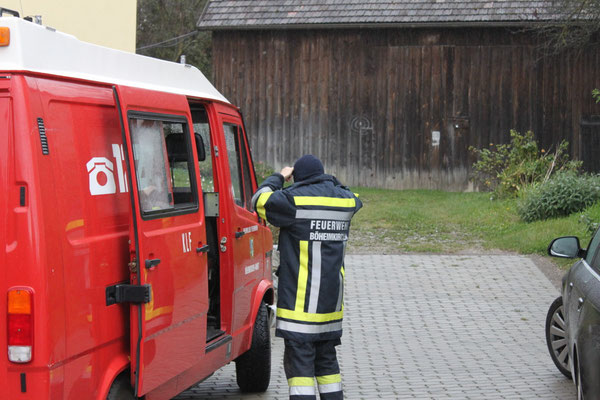 Um die Übung so realistisch wie möglich zu gestalten, rückte zuerst das Rote Kreuz mit drei Fahrzeugen aus. Wenige Minuten später folgte unsere Wehr mit dem RF-S und dem KLF (da sich das TLF