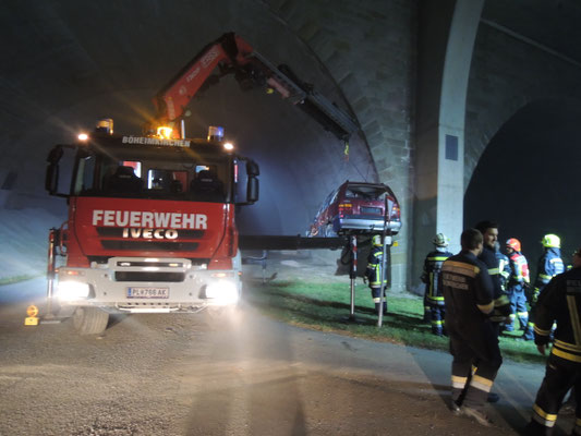 Letztendlich wurde das Unfallfahrzeug mit unserem WLF vom Einsatzort abtransportiert. Anschließend begaben sich alle Übungsteilnehmer ins Feuerwehrhaus Böheimkirchen zur