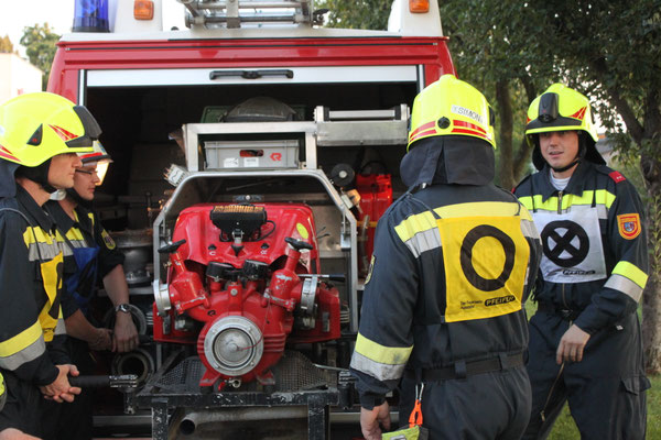 sowohl das Ansaugen von einem natürlichen Gewässer, als auch das Verwenden der TS als Druckförderer an einem Hydranten beübt. Das Ansaugen an einer Ortsfesten Leitung wurde nur theoretisch