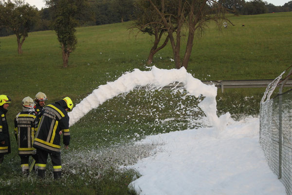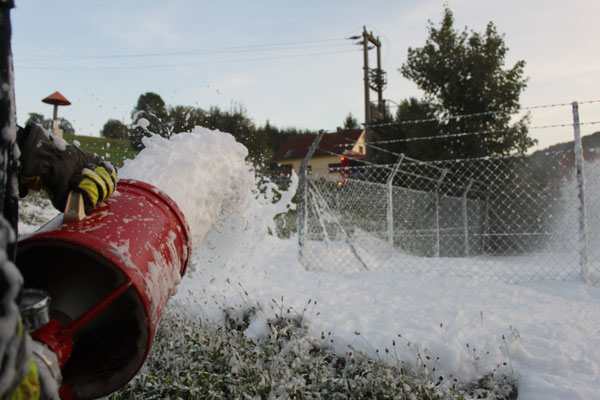 Produktenleitung mit einem Schaumteppich vor dem Brand zu schützen.