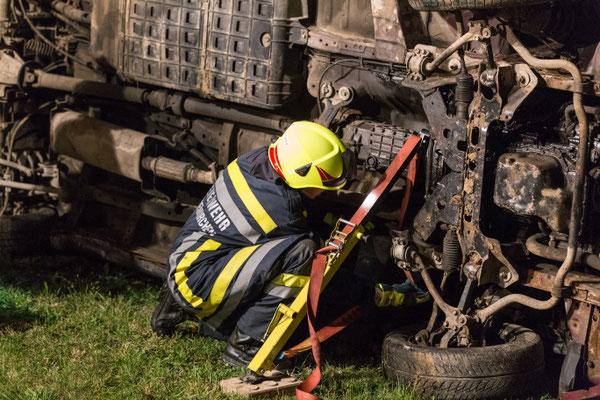 Die Aufgabe unserer Wehr bestand darin, die Unfallstelle abzusichern (sowohl das Fahrzeug gegen umkippen, als auch die gesamte Unfallstelle für nachfolgenden Verkehr) und anschließend mit der