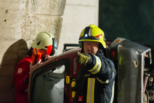 Am Übungsort eingetroffen, erhielt das RF-S Böheimkirchen vom Roten Kreuz genauere Information zum Unfall: Ein PKW liegt auf der Seite, drei verletzte Personen befinden sich im Fahrzeug.