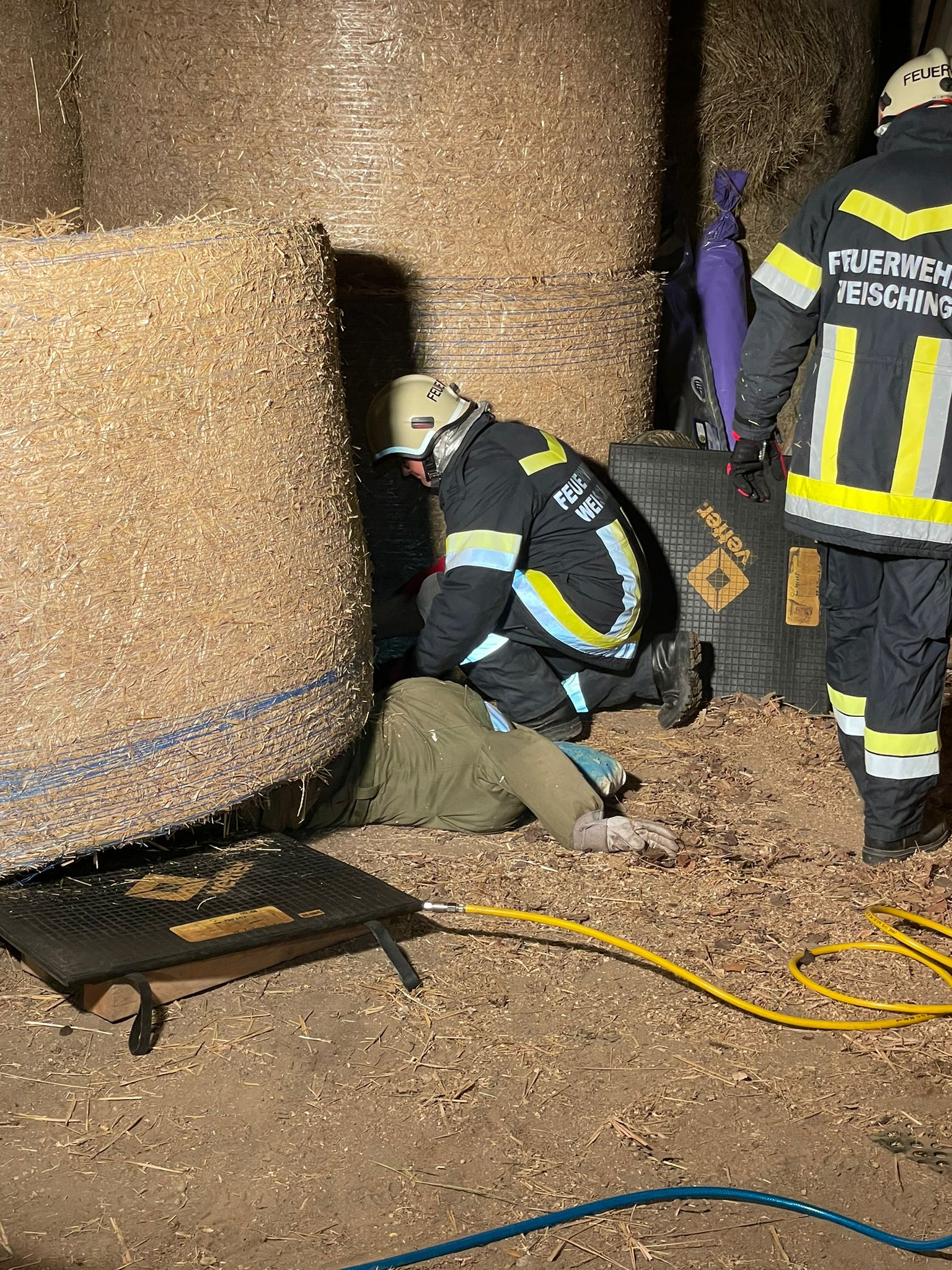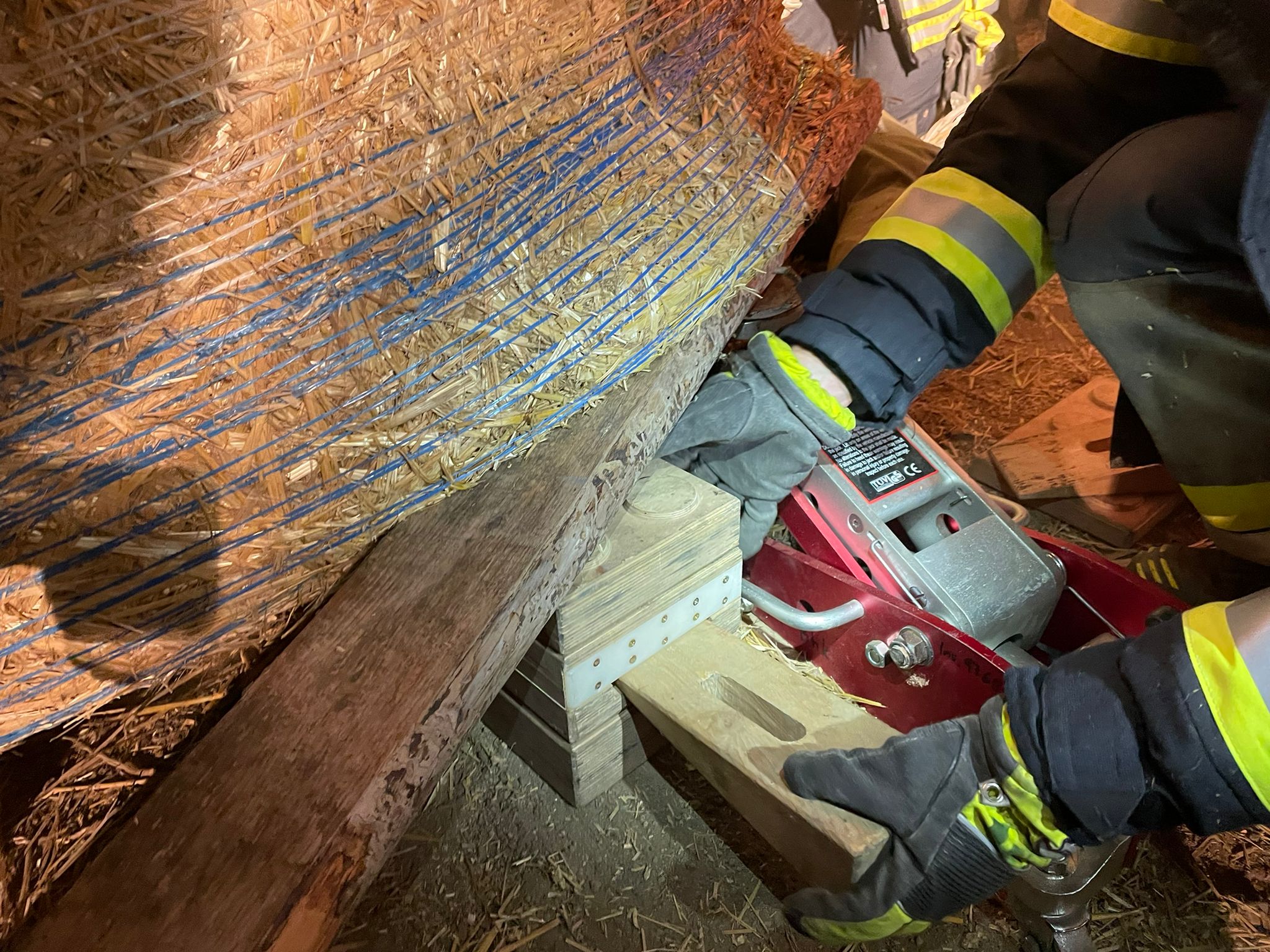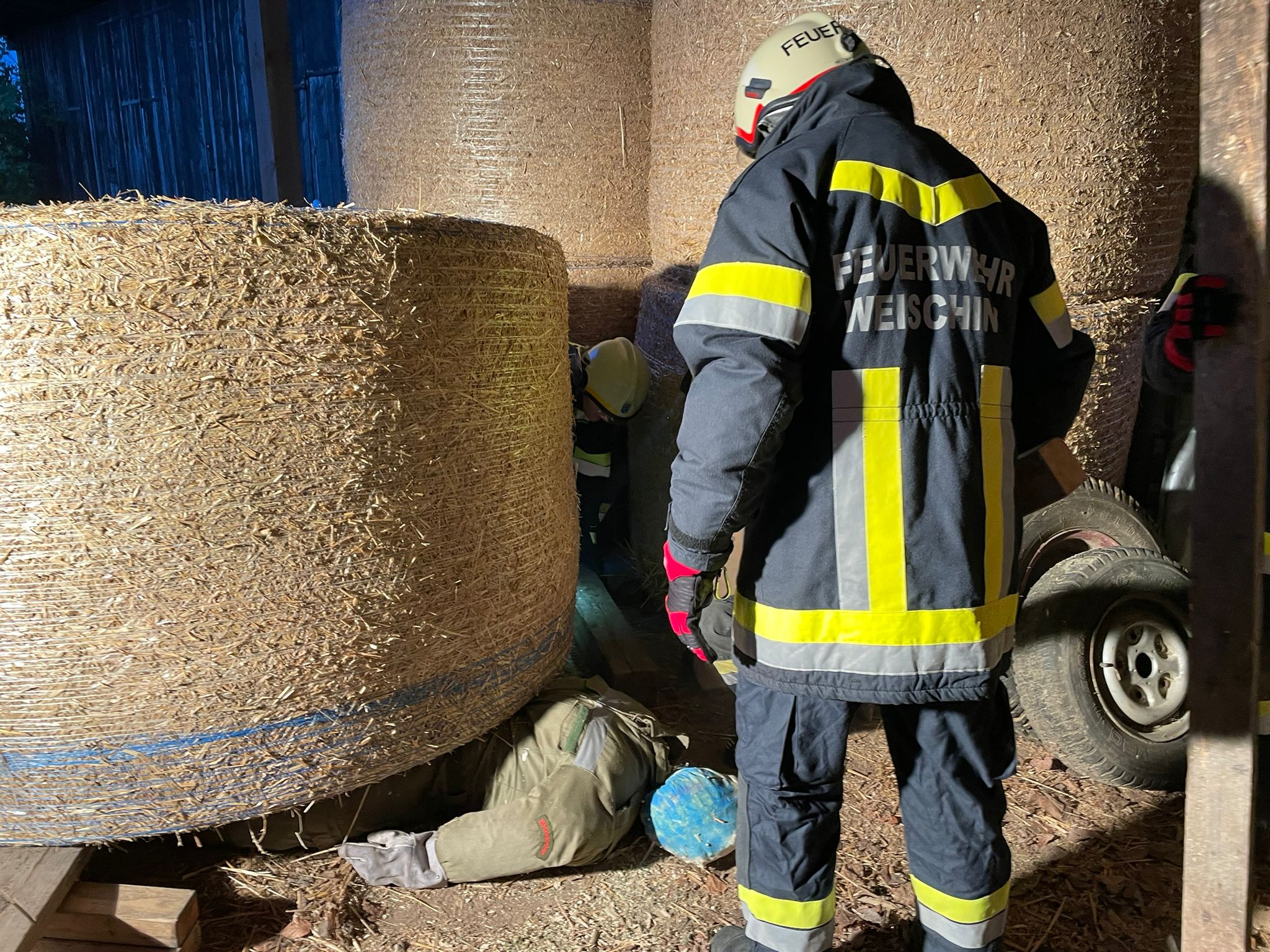 Der zweite Teil der Übung bestand darin, eine bewusstlose Person, welche unter einem Heuballen eingeklemmt war, zu bergen. Dies bewältigten wir mit verschiedenen Methoden, wie zum Beispiel