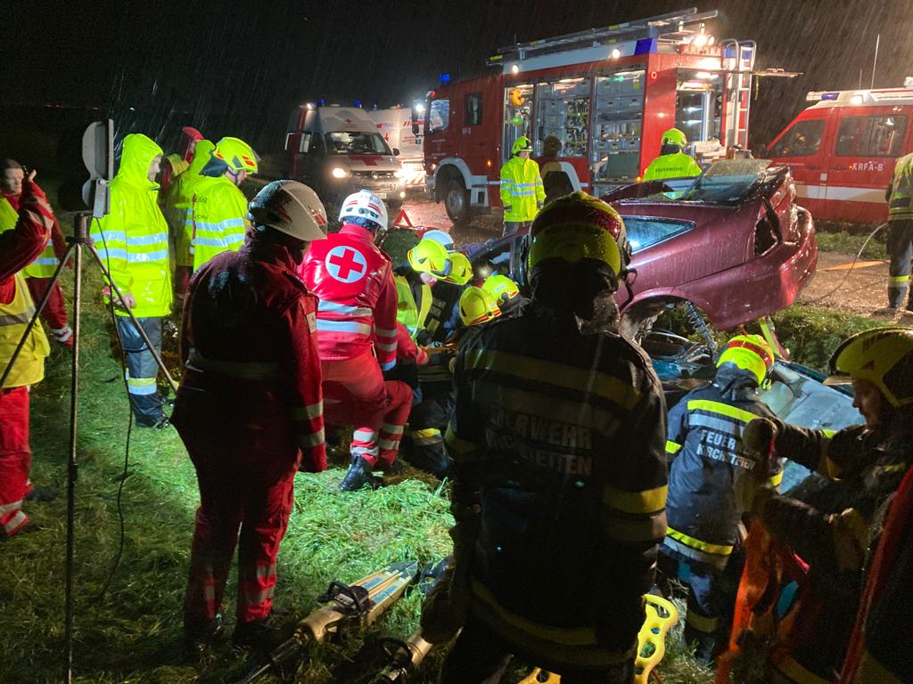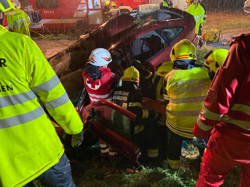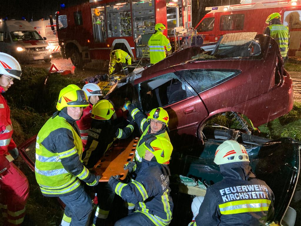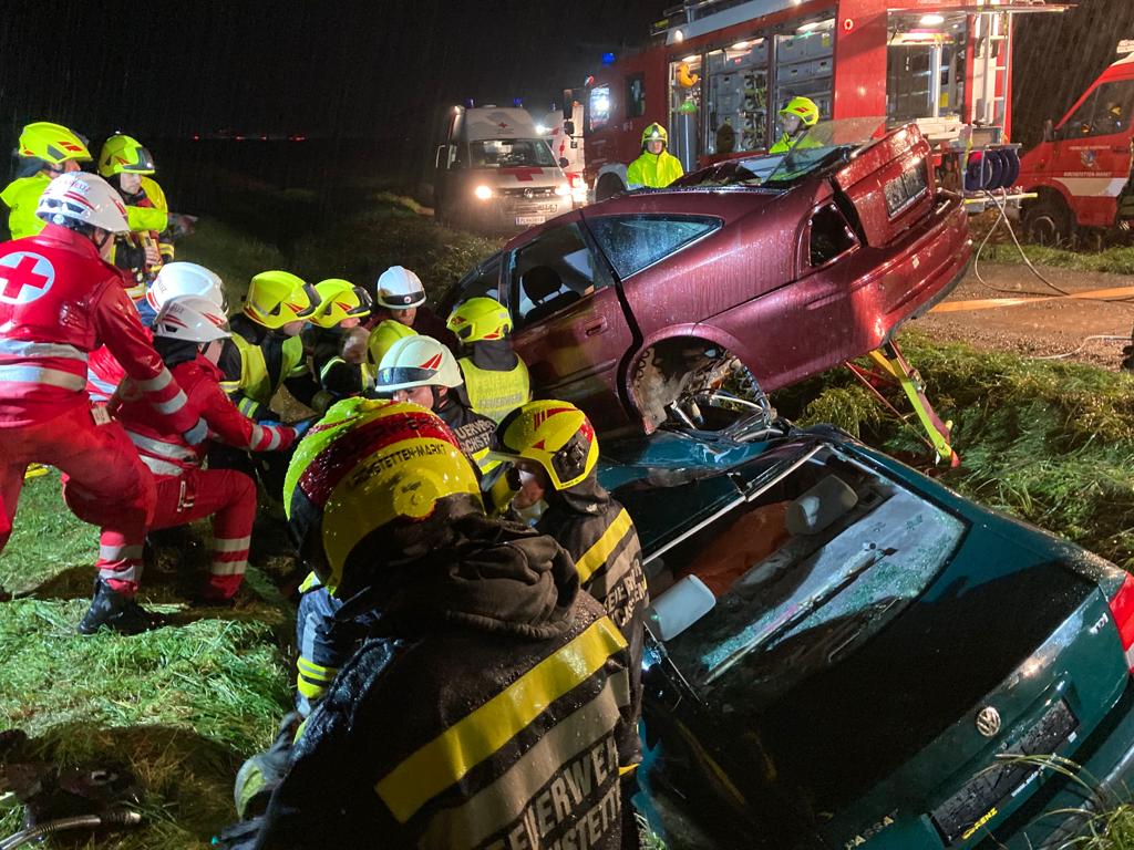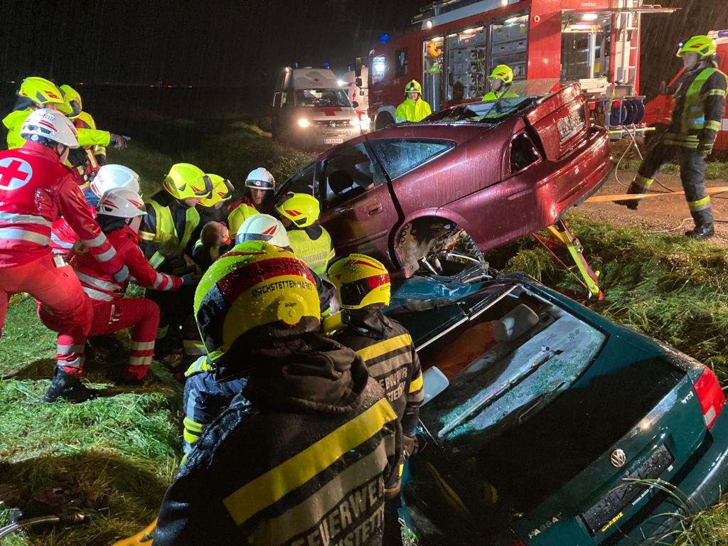 Fahrzeugen befanden. Nach dem Absichern der Autos und Kontaktaufnahme mit den verunfallten Personen wurden sie nacheinander aus den Autos befreit und anschließend vom Roten Kreuz versorgt. Das