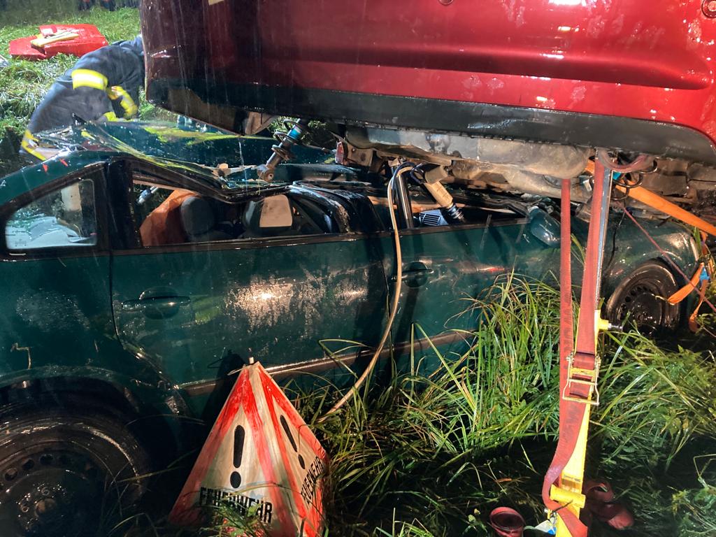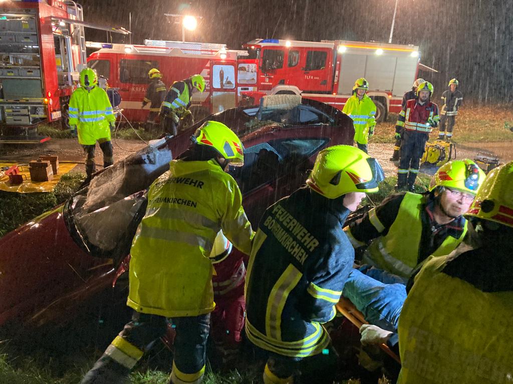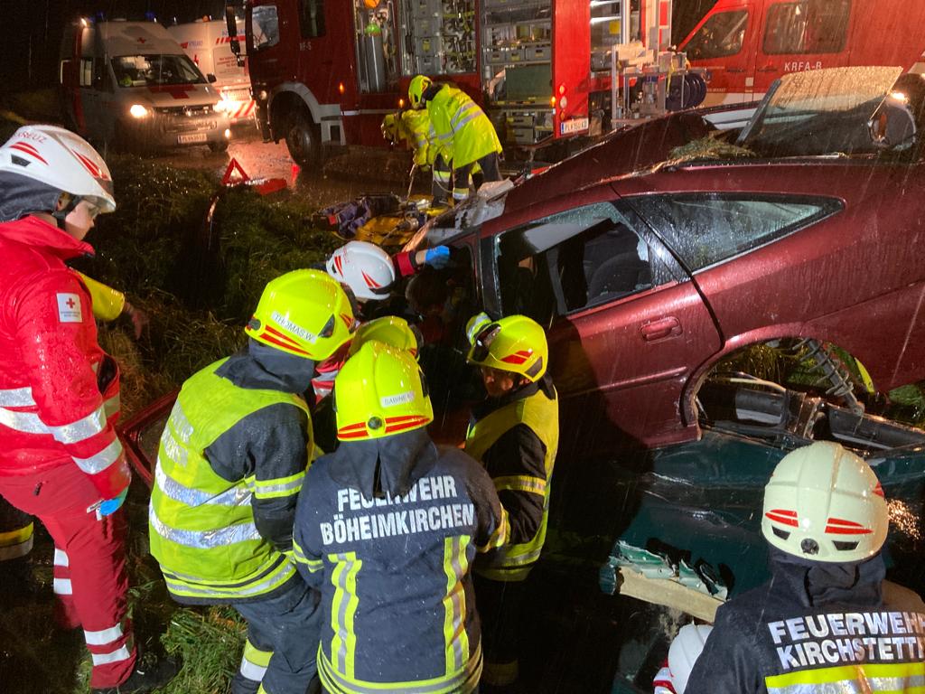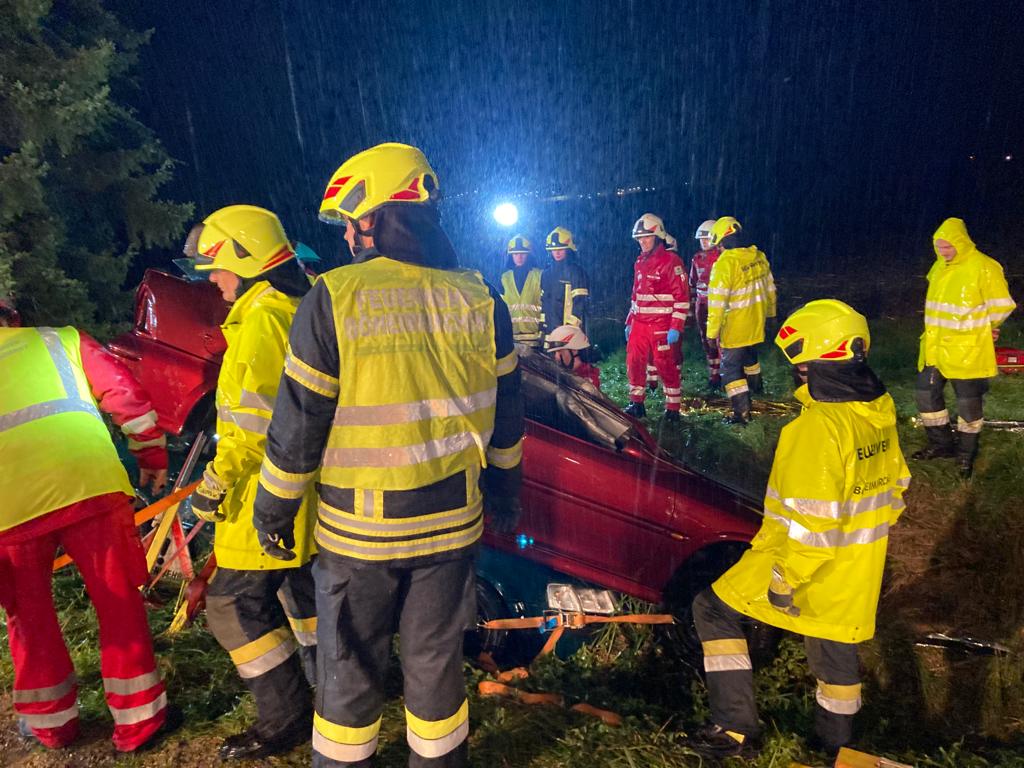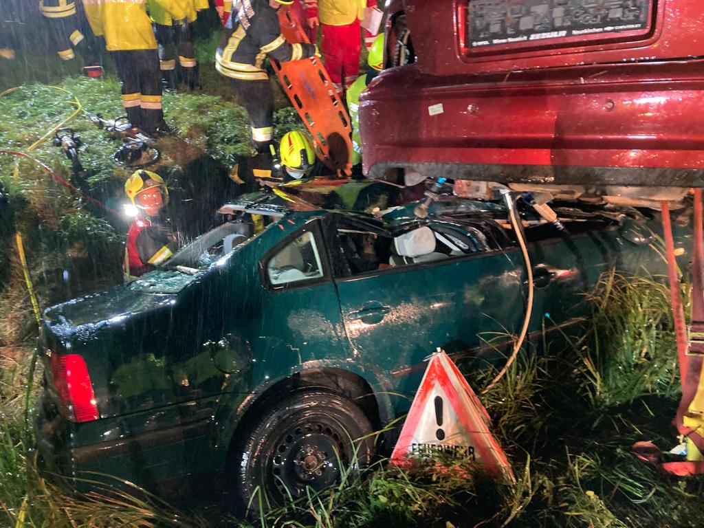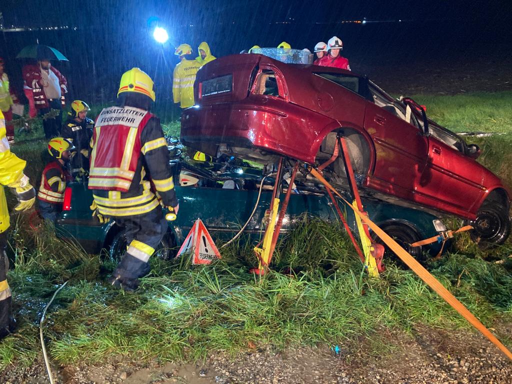 Fahrzeugen befanden. Nach dem Absichern der Autos und Kontaktaufnahme mit den verunfallten Personen wurden sie nacheinander aus den Autos befreit und anschließend vom Roten Kreuz versorgt. Das
