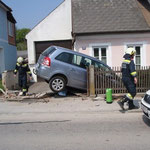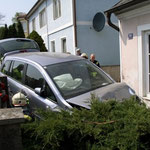 Gartenmauer zum Stehen. Der Fahrzeuglenker konnte sich selbst unverletzt aus dem Fahrzeug befreien, das Auto ist ein Totalschaden.