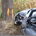 Ein Fahrzeuglenker war mit seinem PKW gegen einen Baum gekracht und gefährdete somit nachkommende Verkehrsteilnehmer.