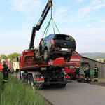 PKW Bergung nach spektakulärem Verkehrsunfall