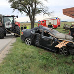 Sofort wurde von uns mittels hydraulischem Rettungssatz mit den Rettungsarbeiten begonnen. Obwohl die Rettung des Verunfallten sehr schnell verlief, konnte vom Notarzt nur noch der Tod des