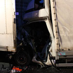 An der Unfallstelle angekommen, bot sich uns folgendes Bild: ein Transporter war auf einen Schwertransporter aufgefahren und war in seinem Fahrzeug eingeklemmt.