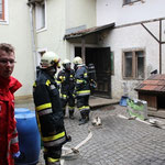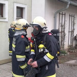 Unsere Wehr stellte sofort einen Atemschutztrupp bereit, der unverzüglich den Innenangriff begann. Schon nach kurzer Zeit konnte Entwarnung gegeben werden: eine Filmsammlung sowie ein Rucksack hatten neben dem Ofen im Obergeschoss Feuer gefangen, welches jedoch vor unserem Eintreffen bereits größtenteils gelöscht werden konnte.