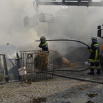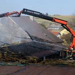 Da durch die ständige Neuentfachung sämtlicher Glutnester, ein vorzeitiges "Brand Aus" nicht in Aussicht stand, wurden die Heu- und Strohballen mit einem Kran vom Dachboden entfernt, in der nebenliegenden Wiese verteilt und sorgfältig immer wieder abgelöscht.