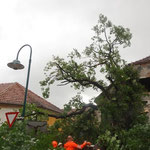 Ein Ast war auf ein Festzelt gekracht und hat ein riesiges Loch in die Plane gerissen. Das Rote Kreuz war bereits vor Ort, das herunterfallende Stück hatte einen Passanten am Kopf getroffen, welcher in das LKH St.Pölten gebracht werden musste.