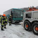 Bei eisiger Kälte und schneeglatter Fahrbahn, wurde unsere Wehr in den frühen Morgenstunden des 07. Februars zu einem Verkehrsunfall mit einem vollbesetzten Reisebus gerufen.