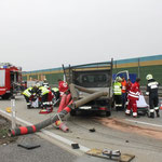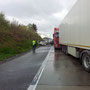 Ein Klein-LKW war stand quer über zwei Fahrbahnen, das geladene Gut hatte er teilweise verloren, die beiden Insassen waren bei unserem Eintreffen noch im Fahrzeug, jedoch nicht eingeklemmt und wurden bereits vom Roten Kreuz versorgt.