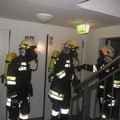 Schon vor dem Eintreffen rüstete sich ein Atemschutztrupp im Tanklöschfahrzeug aus, um gleich einsatzbereit zu sein. Wie schon von der Bezirksalarmzentrale (BAZ) St.Pölten gemeldet, war im Stiegenhaus eine Rauchentwicklung und ein beißender Gestank zu vernehmen, der aus dem Zählerraum im Keller kam.