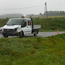 Ein Klein-LKW war stand quer über zwei Fahrbahnen, das geladene Gut hatte er teilweise verloren, die beiden Insassen waren bei unserem Eintreffen noch im Fahrzeug, jedoch nicht eingeklemmt und wurden bereits vom Roten Kreuz versorgt.