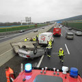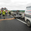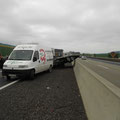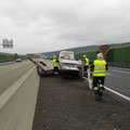 An der Unfallstelle angekommen, bot sich uns folgendes Bild: Ein ungarischer Kleintransporter, der einen BMW auf einem Anhänger geladen, nachzog, dürfte die Leitschiene touchiert haben, dabei geriet der Anhänger außer Kontrolle und kippte um, sodass das angehängte Fahrzeug auf dem Dach zum Liegen kam.