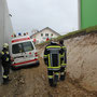 Ein Fahrzeug des Rettungsdienstes war bei einem Rettungseinsatz in eine Baugrube gerutscht und steckengeblieben. Vor der Fahrzeugbergung wurde der schwerverletzte Patient von einem anderen Rettunsauto aufgenommen und ins nächstgelegene Krankenhaus transportiert.