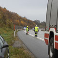 Gegen Ende des Einsatzes zeigte sich wieder einmal wie wichtig die richtige Absicherung der Unfallstell ist, da der Lenker eines PKWs neben der Unallstelle in den Straßengraben fuhr.
