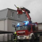 Bei einer Wohnhausanlage haben sich, durch heftige Windböen, seitlich an der Fassade, Bleche gelöst, die in weitere Folge von uns wieder provisorisch entfernd wurden, um weiter Schäden und