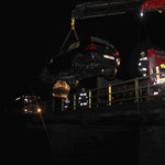Unsere Aufgabe bestand darin, das Fahrzeug mittels unseres WLF-Krans zu bergen und auf dem gegenüberliegenden Parkplatz sicher abzustellen.