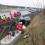 Am Sonntag Nachmittag wurden wir zu einem Verkehrsunfall auf die Autobahn in Richtung Wien gerufen. Beim Eintreffen lag ein PKW seitlich im Graben. Eine Person konnte sich selbst befreien, die andere wurde rasch gerettet. Eine Person wurde mit Verletzungen unbestimmten grades in das Krankenhaus gebracht. Zur Fahrzeugbergung wurde das WLF Neulengbach gerufen.