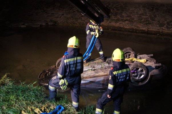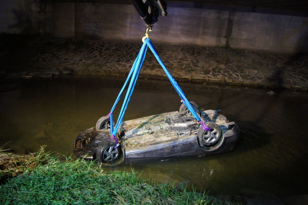 Heute Morgen wurden wir zu einer Fahrzeugbergung alarmiert. Bei unserem Eintreffen lag ein PKW im Michelbach. Bei der Lageerkundung wurde festgestellt, dass sich keine Personen im Fahrzeug befinden. So konnte unmittelbar die Bergung mittels WLF durchgeführt werden.