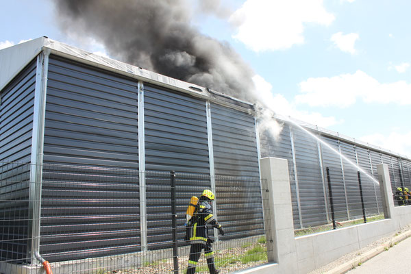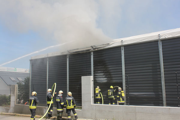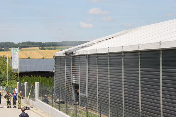 Am 23. Juli wurden wir um 13:00 Uhr zu einem Zelthallenbrand ins Betriebsgebiet Süd, zur Firma Lichtenwagner, alarmiert.
