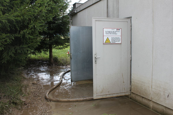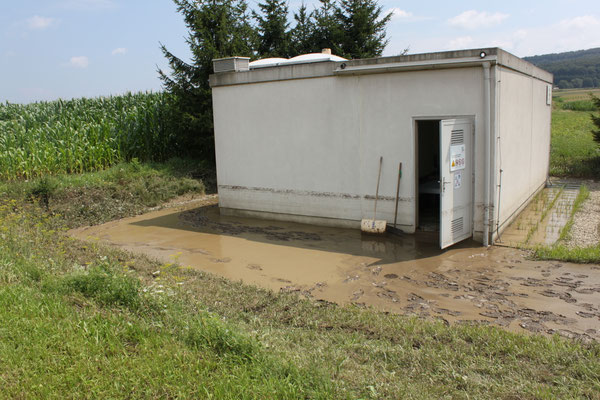 Bei der Gasschieberstation in Bauland drang aufgrund der starken Regenfälle Wasser in das Gebäude. Unsere Aufgabe bestand darin, das Gebäude von Schmutzwasser und Schlamm zu befreien.