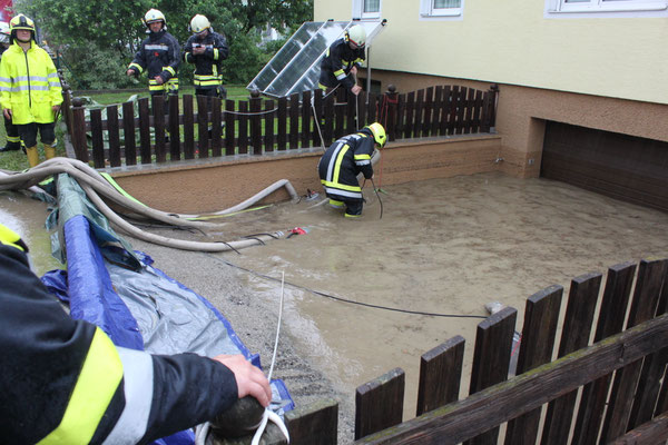 Am Montagabend, den 20.06.2016 wurden wir zu mehreren Unwettereinsätzen gerufen. Unser TLF rückte gemeinsam mit der FF Ausserkasten-Furth und der FF Untergrafendorf nach Plosdorf aus. Nach der Lageerkundung stand fest, dass mehrere Häuser unter Wasser standen. Nach der Fertigstellung einer Schutzwand, konnten wir mit den Auspumparbeiten beginnen. Nach Absprache mit dem Hausbesitzer stellte sich heraus, dass sich mehrere Öltanks und ein Fahrzeug im Keller befanden. Es gelang das Wasser rasch abzupumpen, sodass ein Ölaustritt verhindert werden konnte.