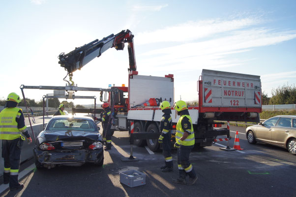 alle Beweise aufgenommen hatte, konnte die Bergung der Fahrzeuge, gemeinsam mit der FF St.Pölten - Stadt, durchgeführt werden. Unsere Aufgabe bestand darin, eines der fünf Fahrzeuge mittels