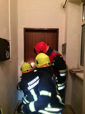 Unsere Tätigkeit am Einsatzort bestand darin, eine Person samt Hund aus einem Aufzug zu befreien. Nach kurzer Lageerkundung konnte festgestellt werden, dass der Aufzug im untersten Stockwerk fest saß. Da sich der Aufzug in etwa auf dem Niveau der Etage befand, gestaltete sich die Befreiung relativ einfach.
