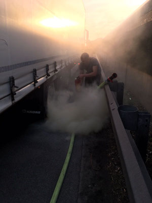 überhitzten Bremse handelte. Diese wurde gekühlt und mittels Wärmebildkamera hinsichtlich der Temperatur geprüft.