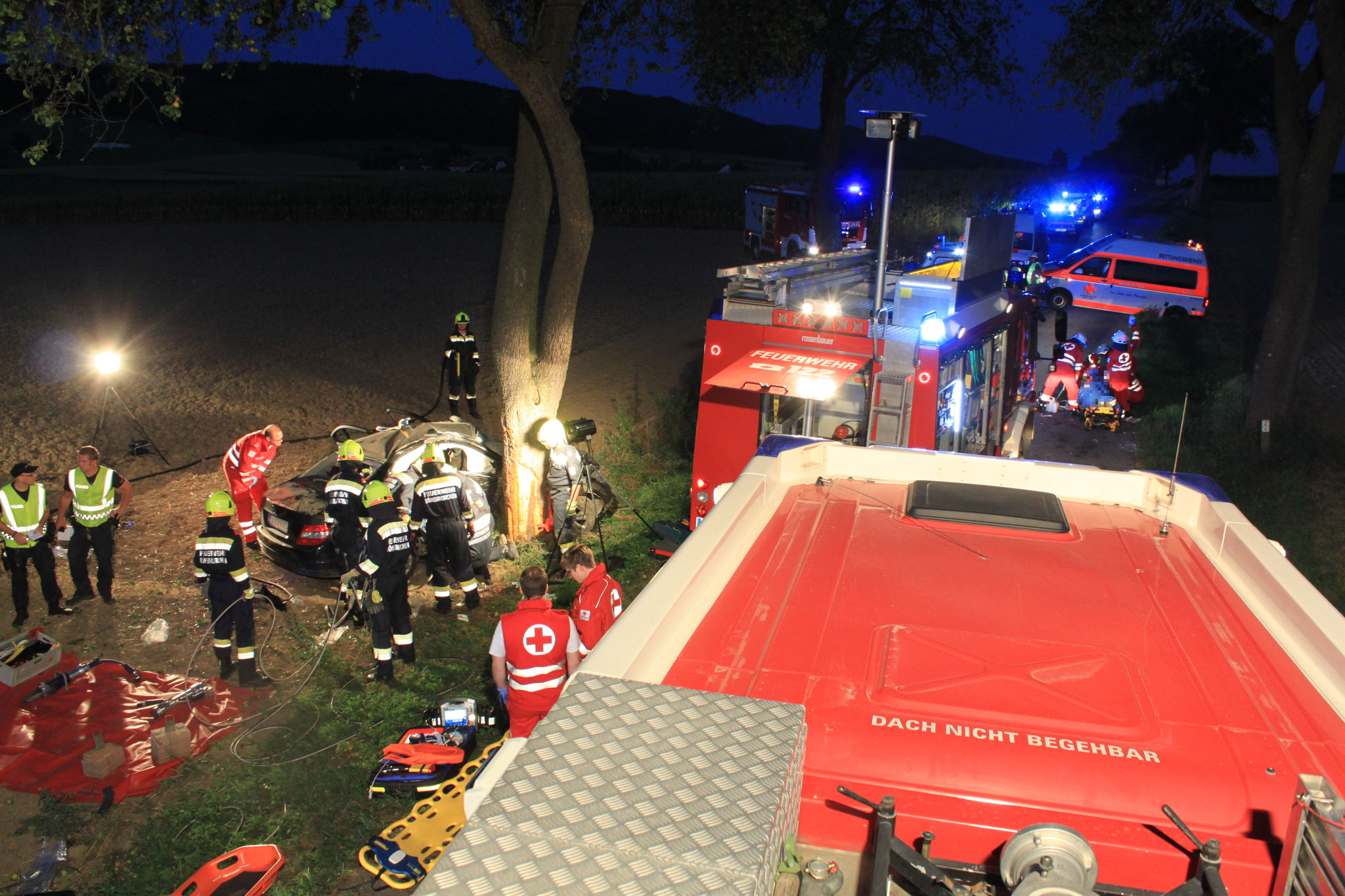aus dem Fahrzeug befreit und dem Rettungsdienst übergeben. Die Insassen wurden durch den Rettungsdienst mit schweren Verletzungen ins Krankenhaus gebracht.