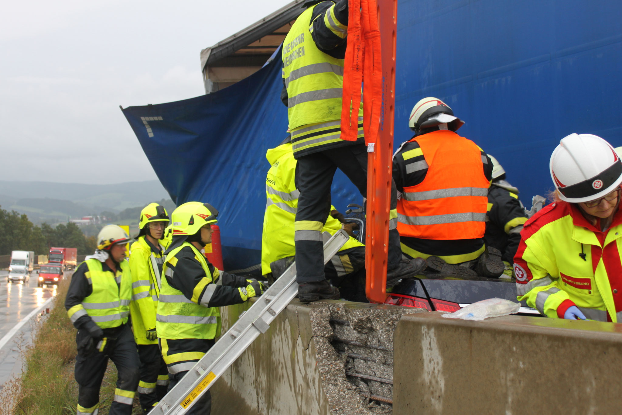 T2: Autobahn-Menschenrettung + schwere LKW-Bergung