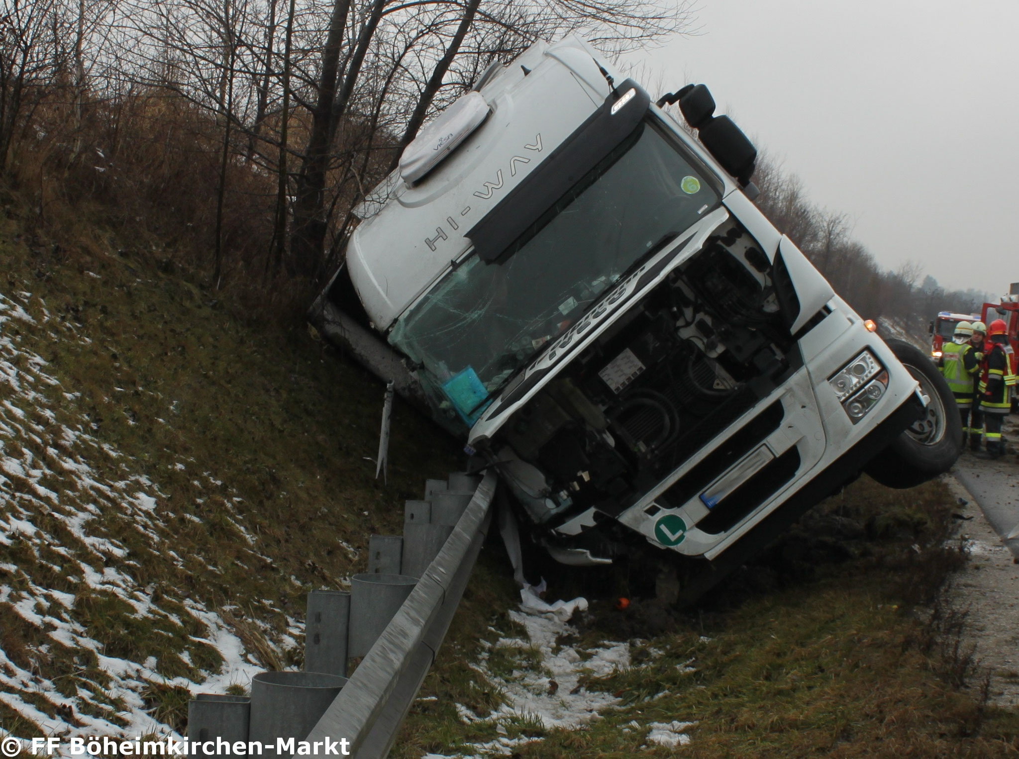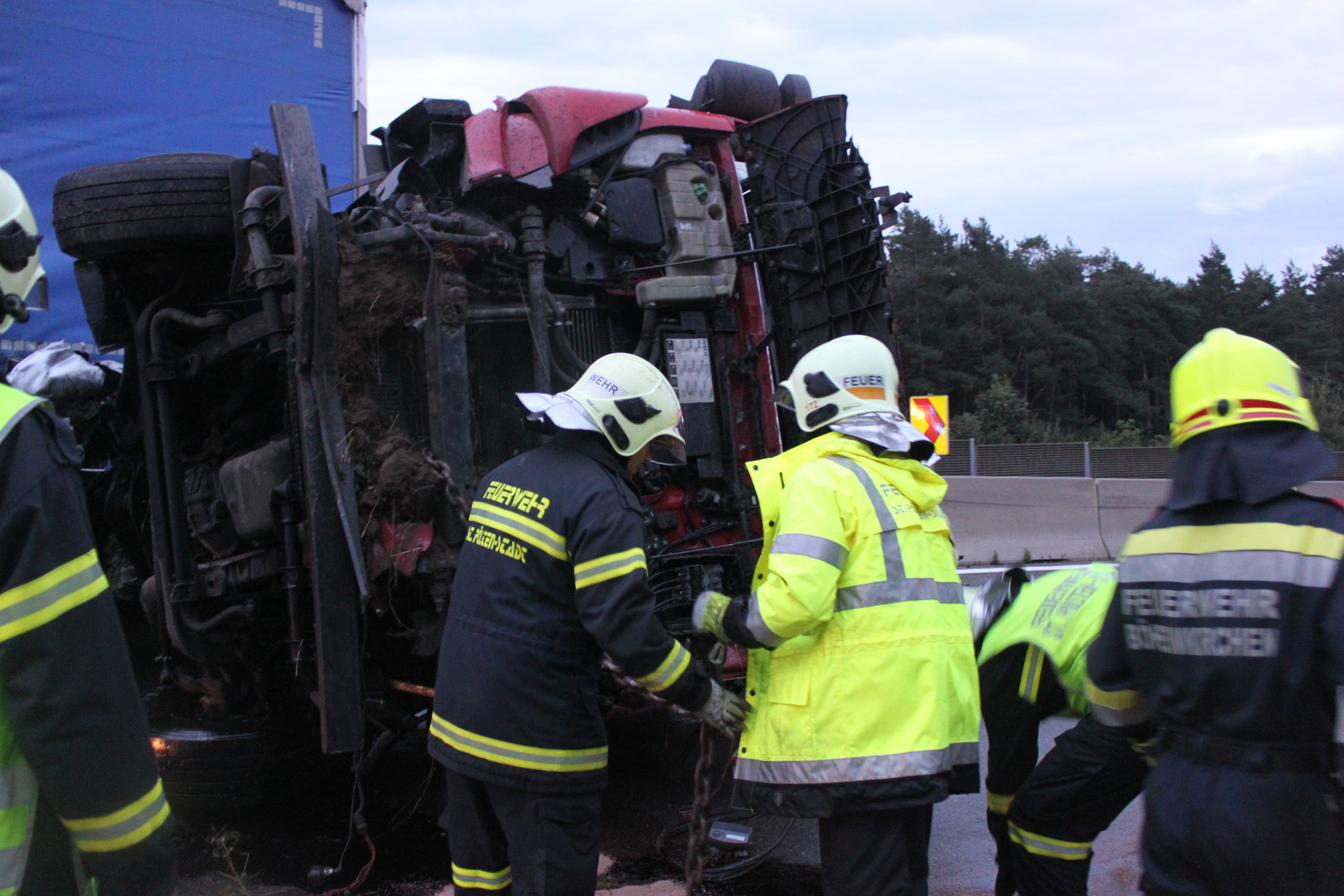 Die Bergung des Lastkraftwagens wurde von einem Berge- und Abschleppdienst übernommen. Unsere Wehr konnte nach rund drei Stunden wieder ins Gerätehaus einrücken.