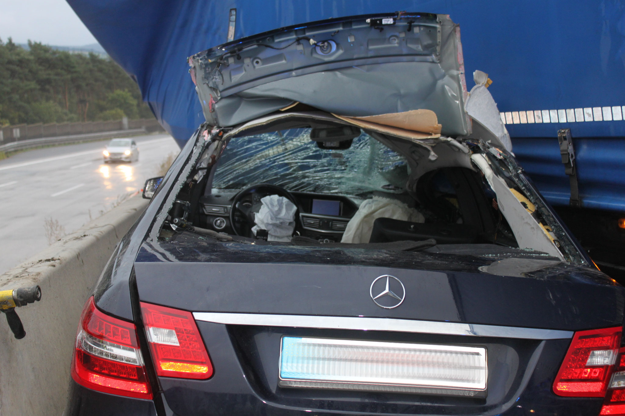 Nach dem die eingeschlossene Person aus dem Fahrzeug befreit werden konnte, wurde diese dem Rettungsdienst übergeben. Der Beifahrer wurde mit schweren Verletzungen ins Krankenhaus gebracht.