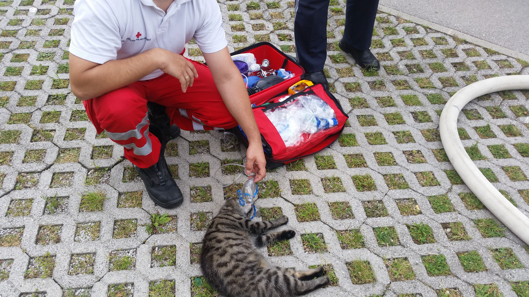 Unverzüglich begaben sich zwei Atemschutzgerätetrupps zur Erkundung der Brandherde und der Tierrettung ins Gebäude. Nach kürzester Zeit konnte die Katze aus der Wohnung gerettet werden, diese