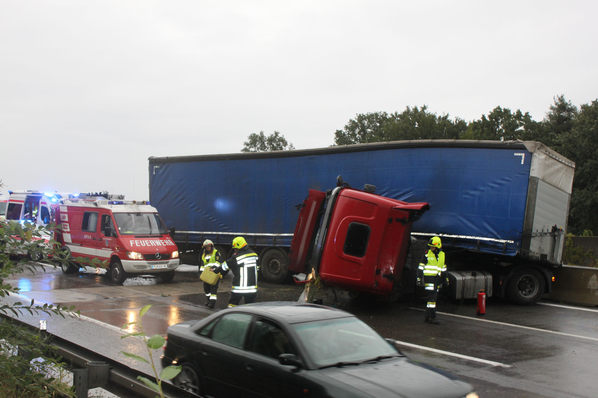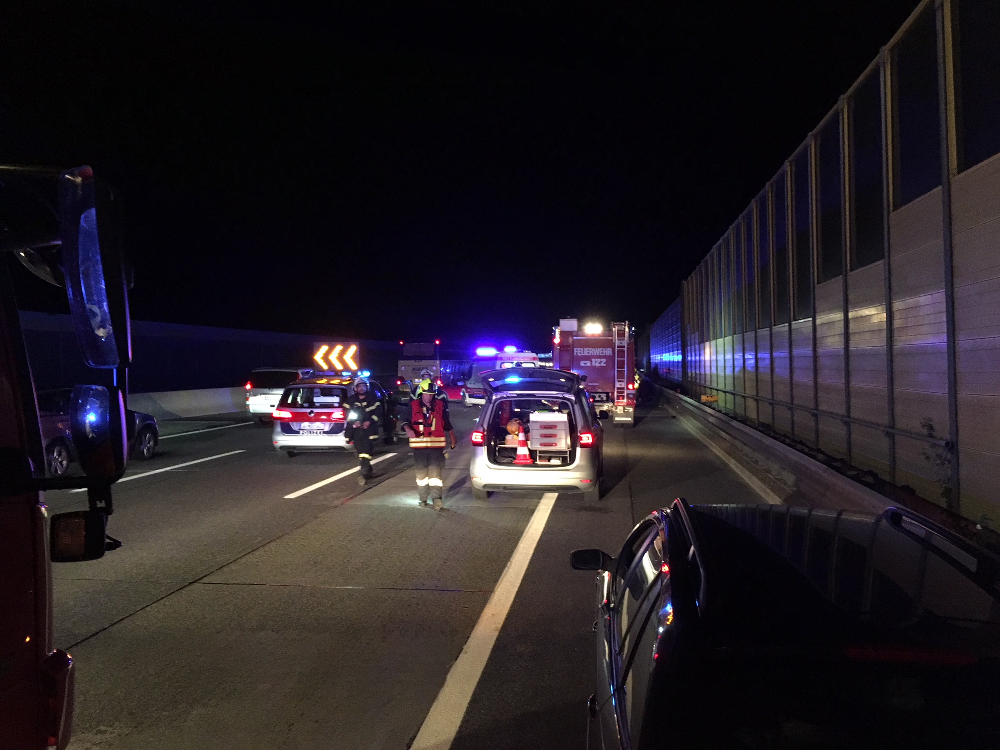 Wechselladefahrzeug nachalarmiert. Gemeinsam mit der Feuerwehr St.Pölten-Stadt wurden die Fahrzeuge von der Autobahn verbracht und gesichert abgestellt.