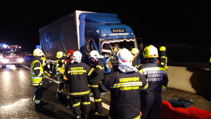 Gemeinsam mit der FF St.Pölten-Stadt wurde der LKW-Brand gelöscht und mittels Wärmebildkamera auf verdeckte Glutnester kontrolliert. Die Bergung des LKW-Wracks übernahm die FF