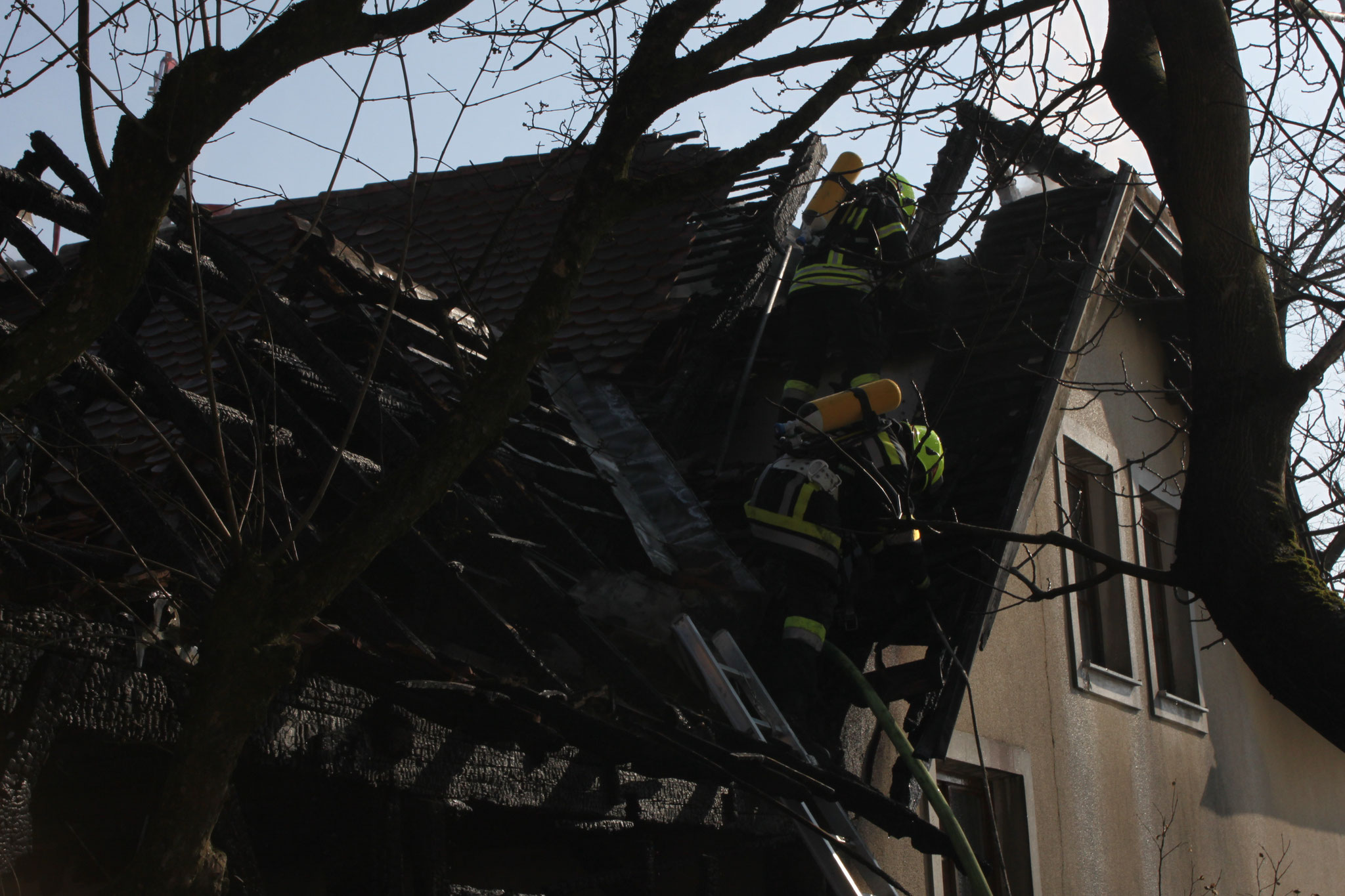 Um den Brand im Dachbereich unter Kontrolle bringen zu können, musste das Dach flächendeckend abgedeckt werden. Danach konnten die Löscharbeiten durchgeführt werden.