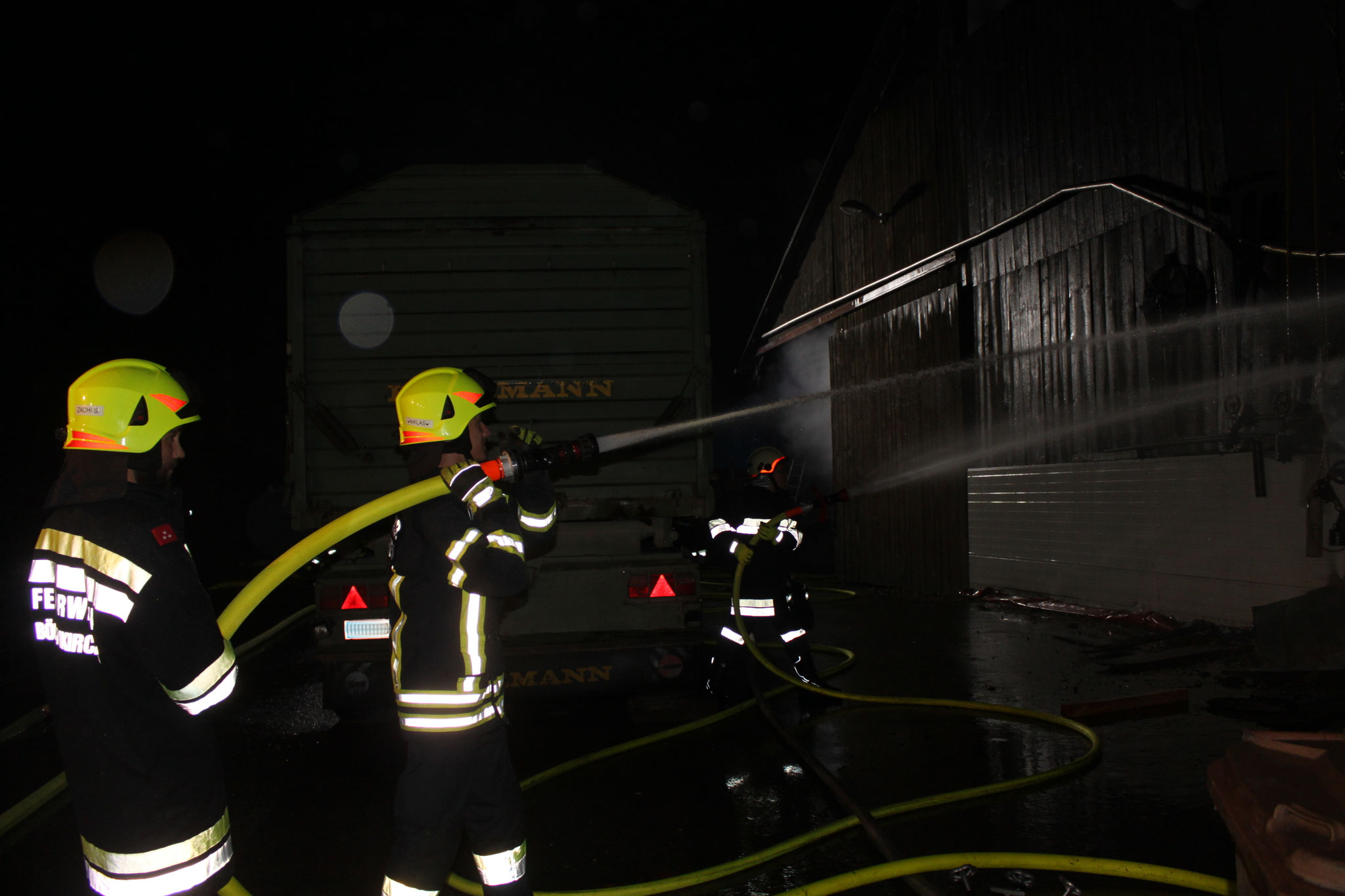 Während der Anfahrt wurde der Einsatz um zwei Alarmstufen erhöht. Die Aufgabe unserer Wehr war es, die Brandbekämpfung mittels Atemschutz durchzuführen. Weiters baute unsere Wehr die