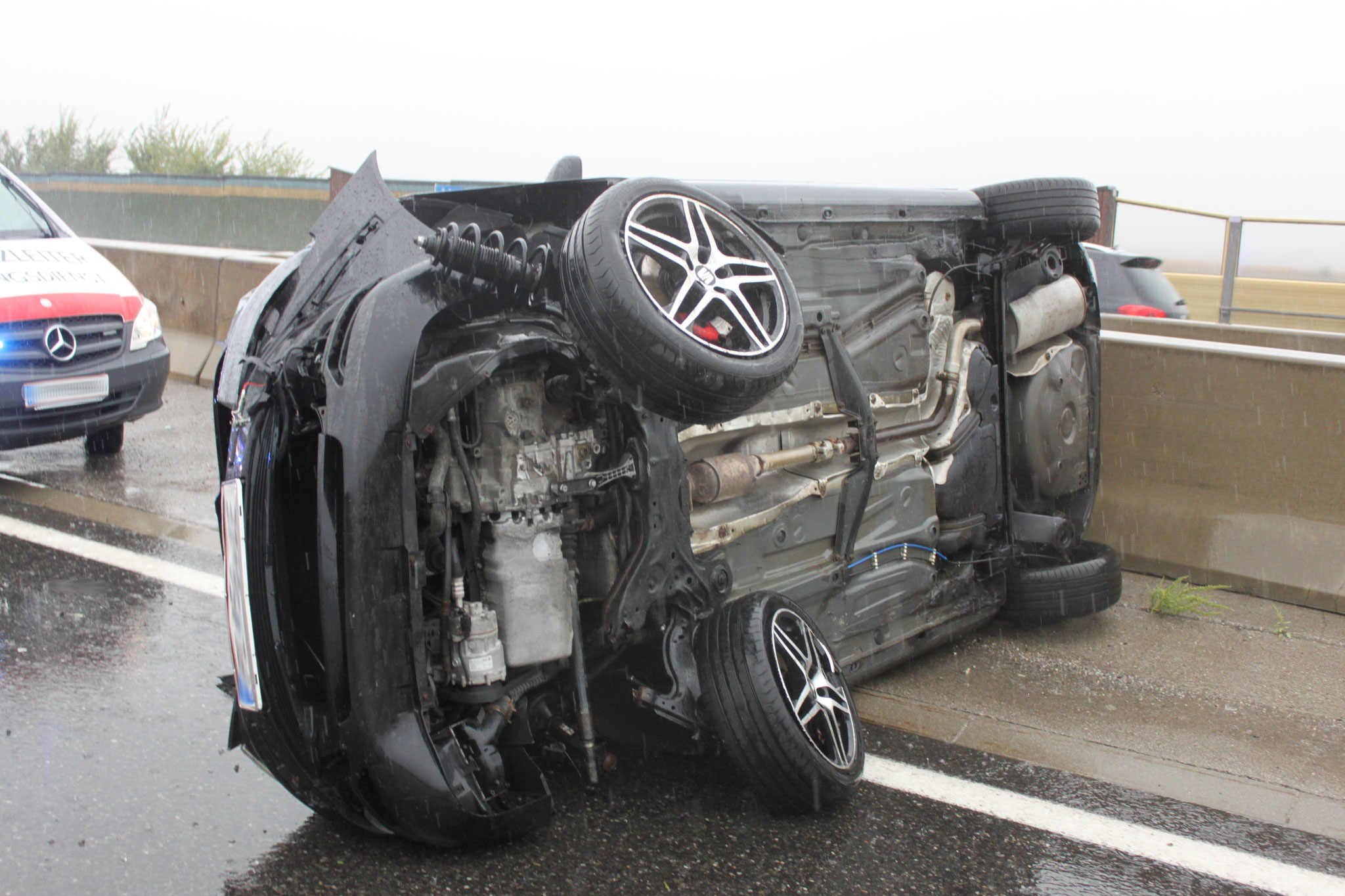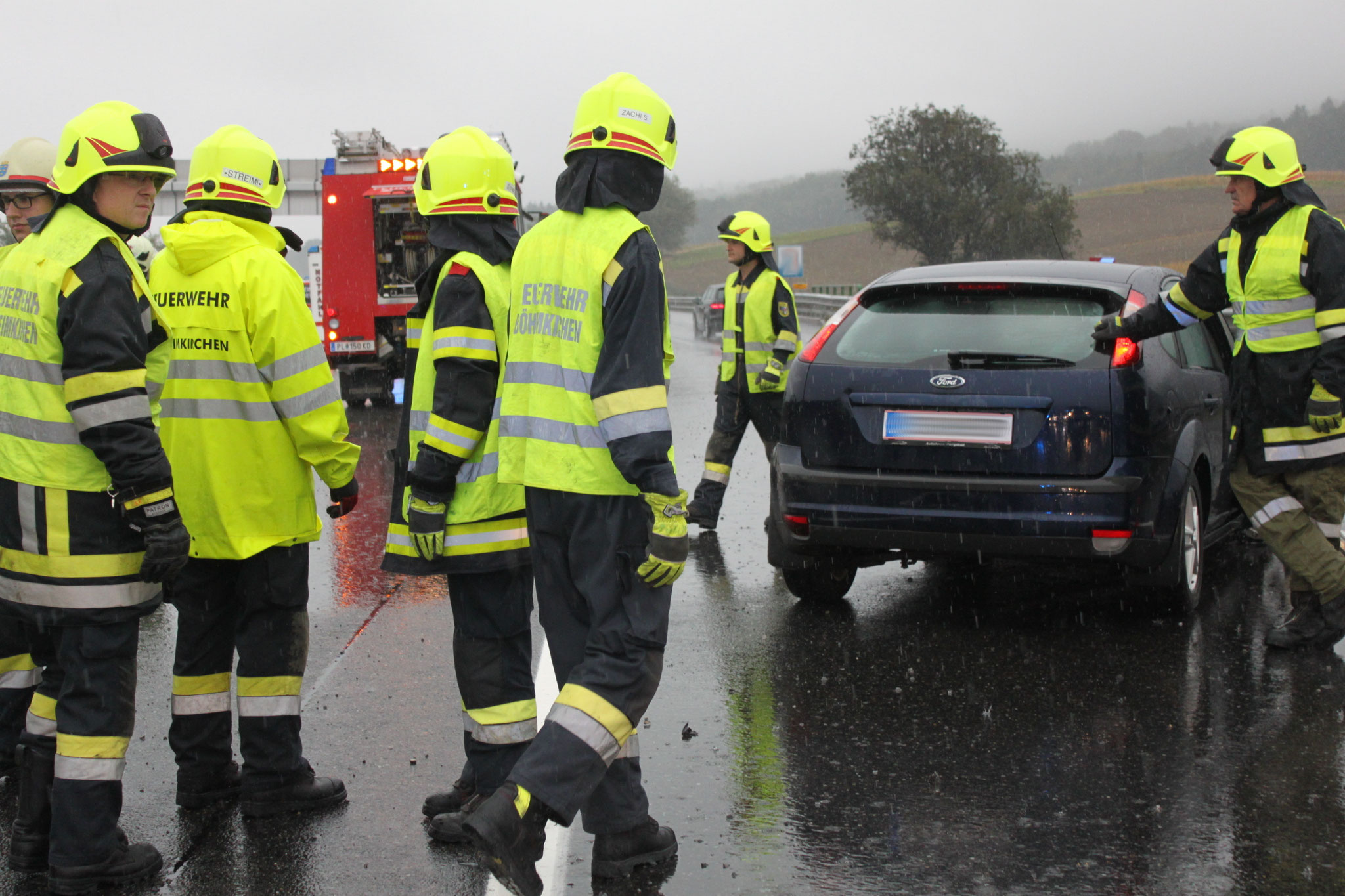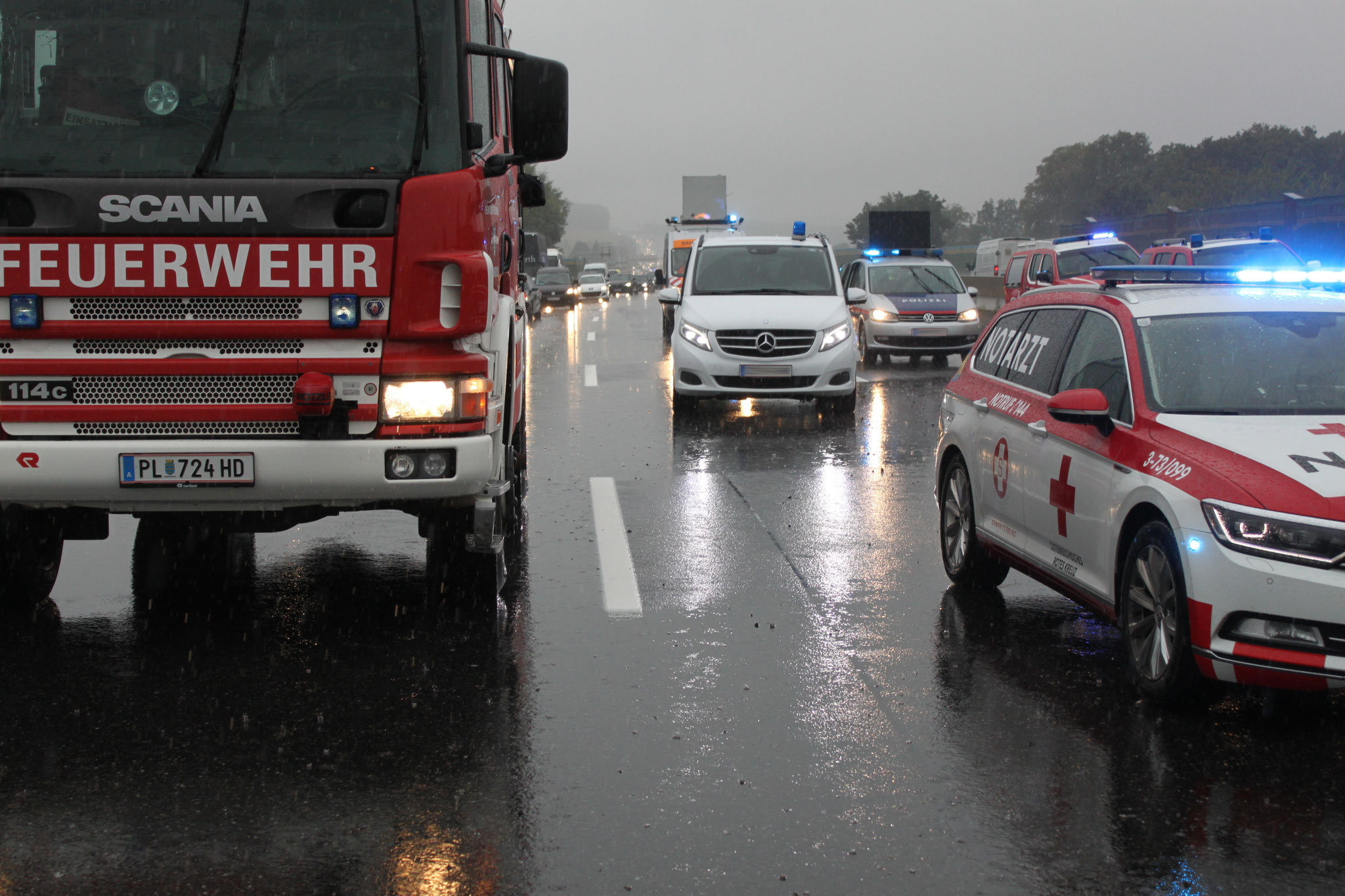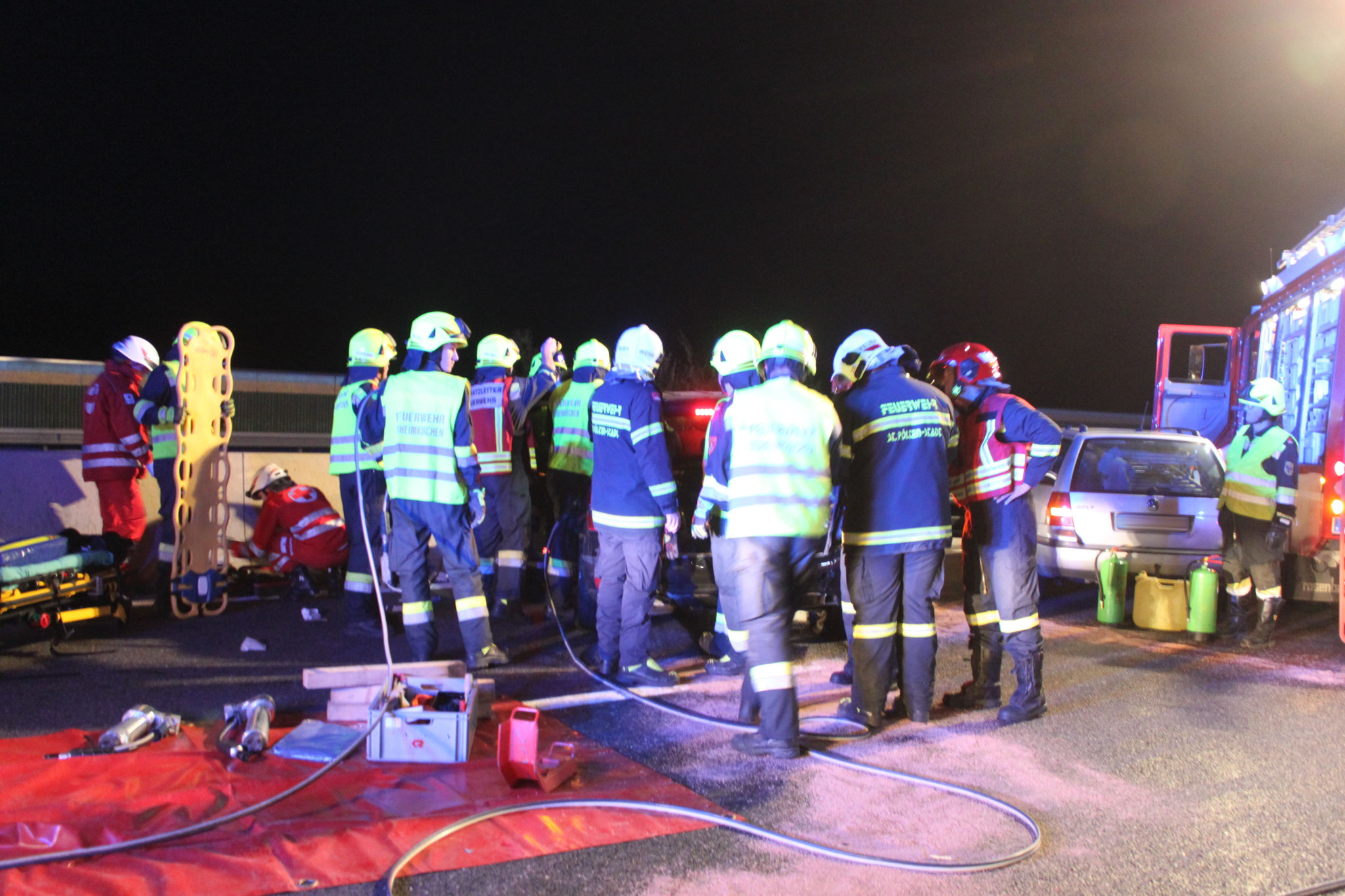 Die Lage beim Eintreffen stellte sich wie folgt dar: Nach einem Unfall standen drei Fahrzeuge quer über der Autobahn. Die Insassen der Fahrzeuge konnten sich bereits vor dem Eintreffen der